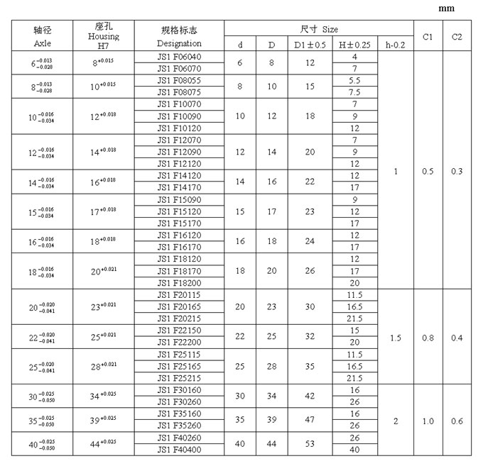 JS1 系列軸承標準尺寸