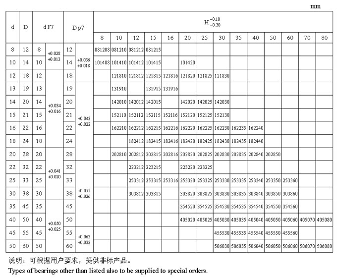 JX 系列軸承標(biāo)準(zhǔn)尺寸