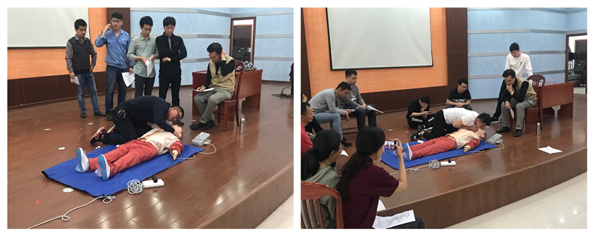 楊老師首先細致講解了紅十字運動的相關知識、急救的原則、人體的構造及機能、各類常見急癥和意外傷害的急救方法、人體各主要部位創傷的救護方法以及常見突發事件的應急措施等理論知識。