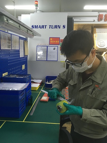 醫用口罩生產線的研制離不開零部件的生產。機具車間承擔了口罩生產線大部分的零部件加工,為了在短時間內保證生產線裝機成功,車間副主任何泗武同志發揮機具車間機加工工種多、設備齊全的優勢,組織十多名生產骨干,分工協作,攻堅克難,加班加點,短短五天時間就完成了105種型號的零部件,總計506件。從2月10日接到生產任務開始,他就一直在生產一線上,對每張圖紙,定工藝、備料,安排生產加工。每天從上午八點至晚上十點,十四個小時的工作,全程不離崗,經常因工件急送下道工序加工,親力親為,如鋸料、鉆孔、攻牙,送熱處理等等,有時忙的連簡單的工作餐都不能按時吃上。