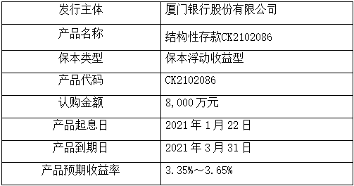 委托理財產品名稱:結構性存款CK2102086。