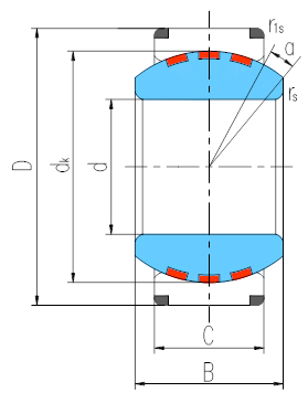 產品特點:外圈沿軸向剖分成兩半,用鎖圈固定,外圈材料為軸承鋼,淬火,磷化,球面鍍硬鉻;內圈材料為銅合金,球面鑲嵌固體自潤滑材料。
