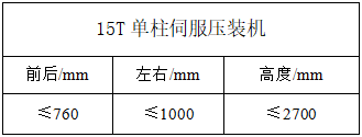 項(xiàng)目名稱:15T單柱伺服壓裝機(jī)(1臺(tái))