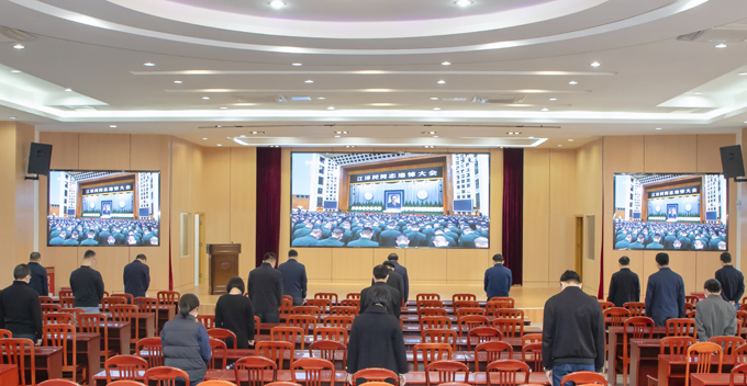 收聽收看過程中,大家悲痛肅立,在悲壯的哀樂聲中默哀三分鐘,認真聆聽習近平總書記所致悼詞,追憶江澤民同志光輝的一生和建立的豐功偉績,深刻感悟江澤民同志的精神風范。