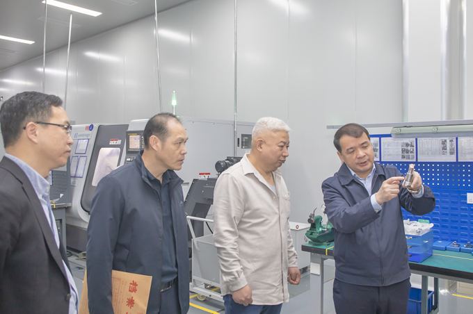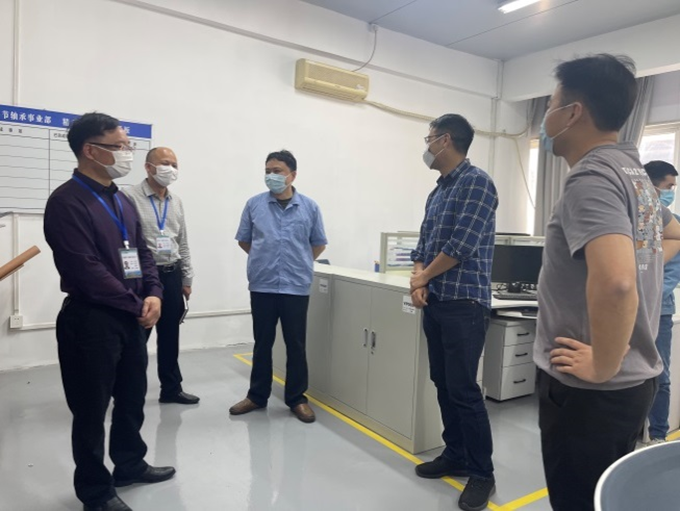 林培榕一行深入公司關節軸承事業部、航空事業部、檢測實驗中心實地調研并進行座談交流,聽取公司市場開拓、技術創新及管理創新取得成效的介紹。