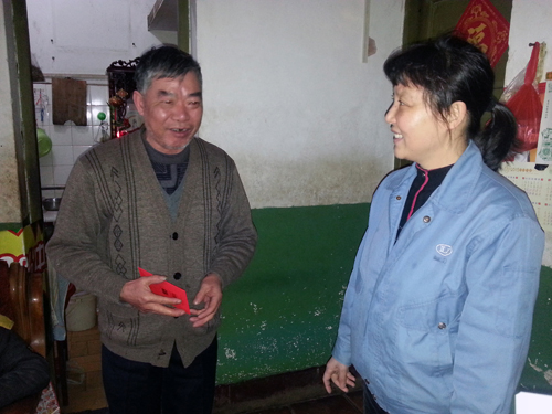 啟動儀式后,公司義工代表隊作為活動的第10支義工隊伍,在新橋社區(qū)工作人員帶領(lǐng)下,將愛心傳遞到了位于前鋒新村、南太武、新橋等地的5戶低保戶人員家中。義工代表們親切的笑臉,熱情的慰問為連日來的低溫帶來濃濃的暖意。