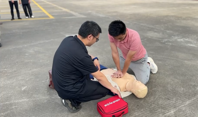 ▲救護(hù)組對受傷人員實(shí)施心肺復(fù)蘇術(shù)