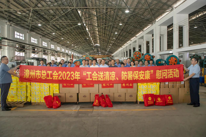 2023年7月14日,漳州市總工會(huì)黨組書記、常務(wù)副主席張哲青,黨組成員、工會(huì)副主席曾景賢帶領(lǐng)漳州市總工會(huì)慰問團(tuán)蒞臨龍軸集團(tuán)開展“工會(huì)送清涼、防暑保安康”慰問活動(dòng)。龍軸集團(tuán)黨委書記、董事長陳晉輝,黨委副書記、工會(huì)主席劉明福參加慰問。