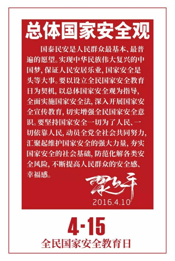 中共中央總書記、國家主席、中央軍委主席、中央國家安全委員會主席習近平提出了總體國家安全觀,