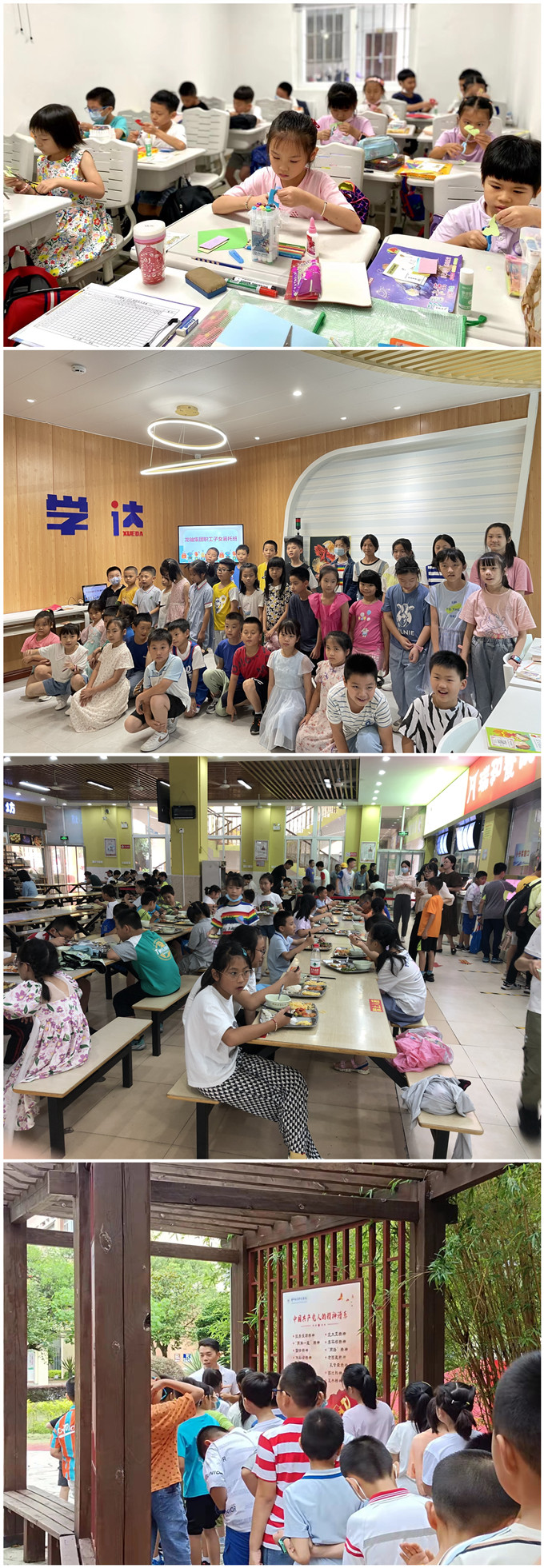 暑托班除作業輔導外,還提供課外興趣課程,如閱讀、書法、剪紙、美術、圖形圖像處理、禮儀素養、安全自護、小醫生體驗活動等。暑托班通過“托”“管”“學”方式,契合職工及子女的需求,引導和幫助職工子女度過一個安全快樂、豐富多彩的暑假生活。
