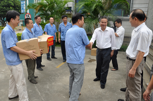 2013年7月2日上午,市委常務(wù)、市總工會主席張禎錦一行在公司工會主席張?zhí)┥⒊?wù)副主席洪麗玲的陪同下,到我司藍(lán)田廠區(qū)看望、慰問高溫酷暑堅持奮戰(zhàn)在一線的廣大職工,為他們送去防暑降溫用品。市領(lǐng)導(dǎo)在了解了我司的生產(chǎn)情況及公司在保證員工安全健康的前提下,采取的一系列防暑降溫措施后,對我司表示肯定,并希望我司能夠繼續(xù)采取有效措施,合理安排工作時間,進(jìn)一步改善職工工作環(huán)境和條件,把防暑降溫工作做得更好。
