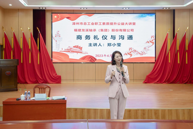 為進一步提升職能部門技術管理人員綜合職業能力,塑造龍軸集團良好形象,在市總工會的大力支持下,公司于3、4月開展2023年度職工素質提升公益大講堂暨政務、商務禮儀知識專題培訓,邀請國際認證形象顧問、國家高級政務禮儀指導師、國際注冊高級禮儀培訓師陳燕和漳州城市職業學院副教授、國家認證一級形象設計師鄭小瑩分別進行政務禮儀和商務禮儀培訓。公司領導及相關職能部門人員參加。