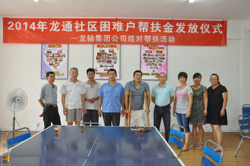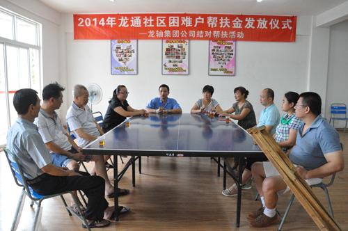 2014年8月8日,公司與薌城區(qū)南坑街道龍通居委會聯(lián)合舉行了“2014年幫扶特困戶幫扶金發(fā)放儀式”。 公司黨委副書記張?zhí)┥跁显俅蜗?012年結(jié)對幫扶的5戶龍通社區(qū)困難戶各發(fā)放了3000元的幫扶金,并和他們進行了親切座談。面對受助人員溢于言表的感謝之辭,張?zhí)┥硎荆骸白鳛楦=ㄊ∥拿鲉挝?,帶頭開展社會公益事業(yè)是義不容辭的責任。希望你們的生活能有所改善,同時,也希望通過這樣的行動,積極傳播扶危濟困的中華民族傳統(tǒng)美德,讓更多需要幫助的人得到社會關(guān)懷!”